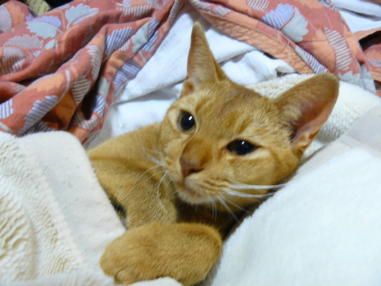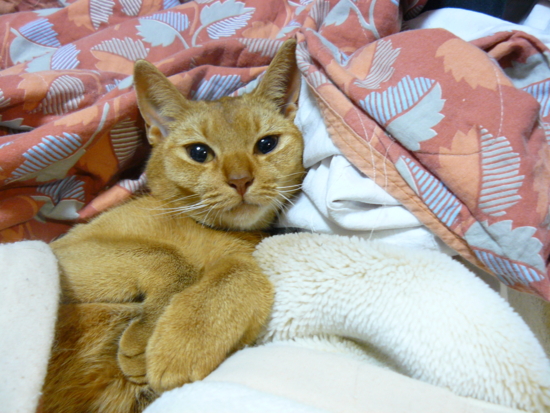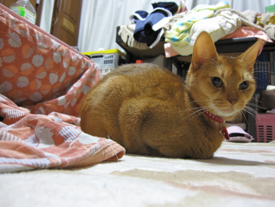 こたつから出てきました。