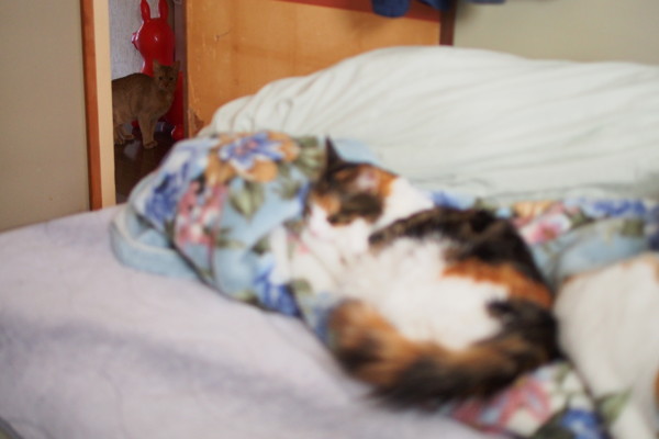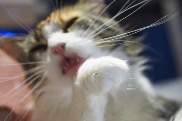カバンの中へゲロりそうだったので慌てて抱きかかえ、クッションフロアへ向けて発射。