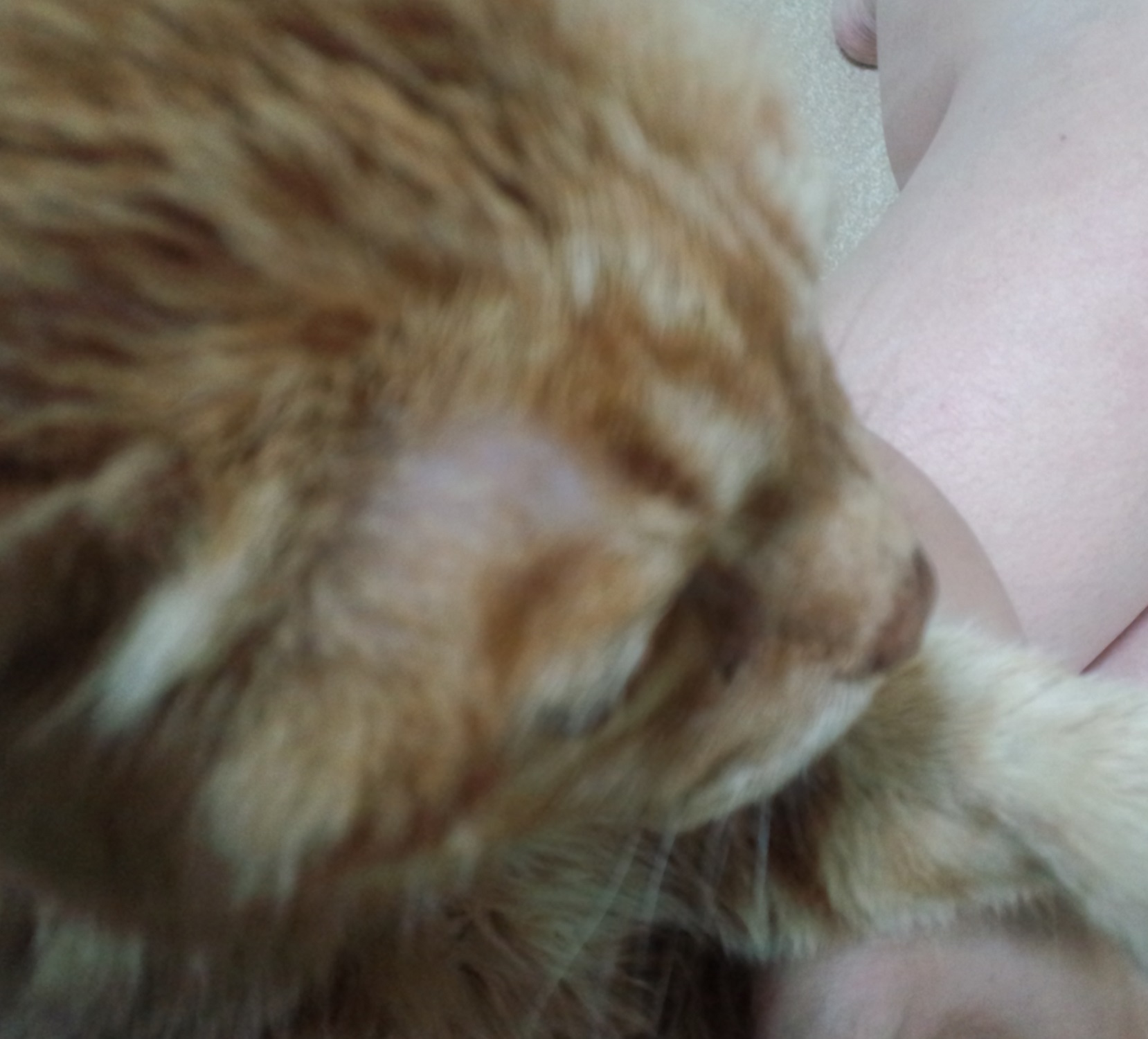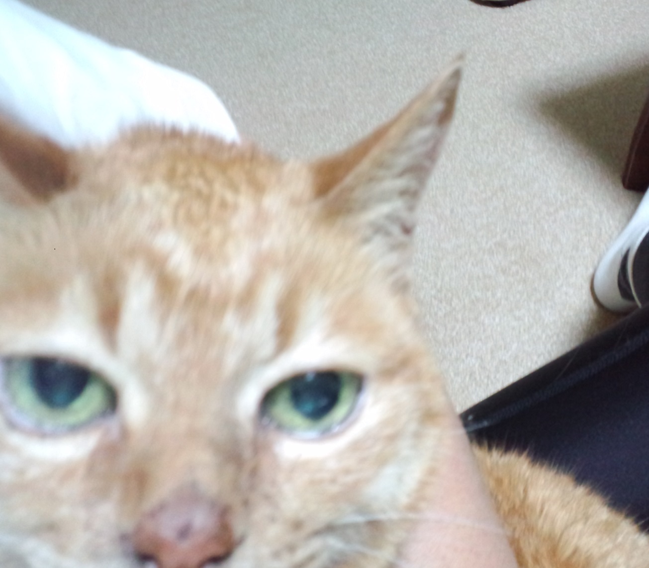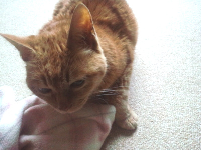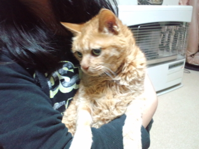 父ちゃまと私の仕事の準備に動き回っても爪をたてたて抱っこ状態のまま・・・