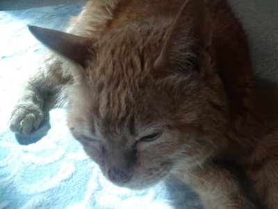 ( ´-`)。o 0 (… 眠いけど…お帰りのスリスリしなきゃなのね …ぼぉー…)