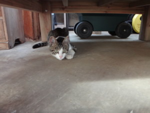 高床式ケージの床下に避難していた。あれ?ずっとそこにいた?
