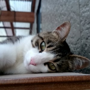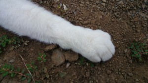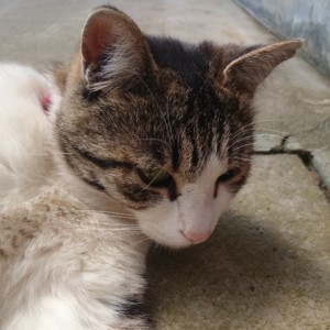 【速報】昨日たぶんのらねことけんかしたもよう。ピンクのお鼻の横に2mmほどの傷を発見。