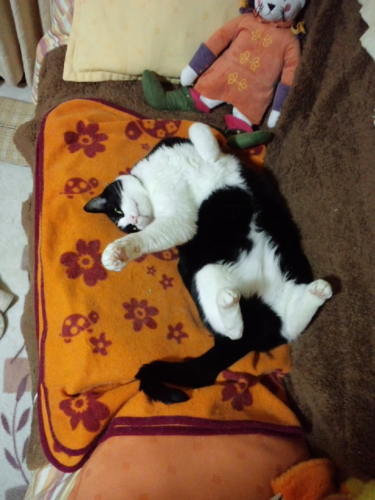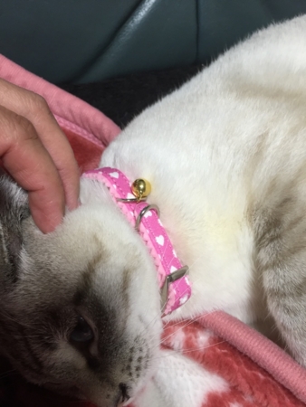 猫ズ、大暴れしている以外は足音も聞こえず寂しいので、飼い主の都合で鈴をつけました。