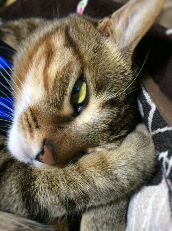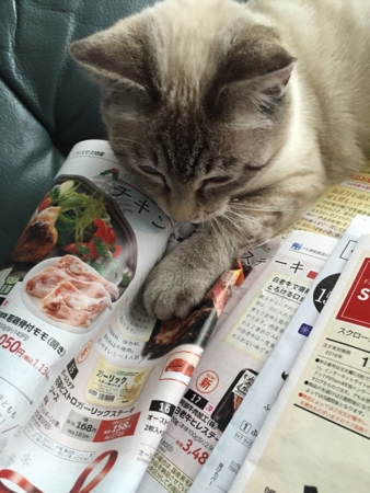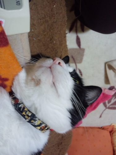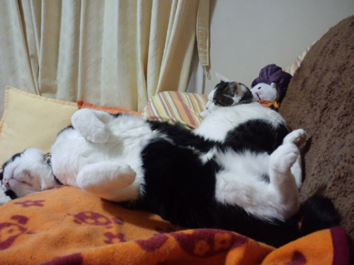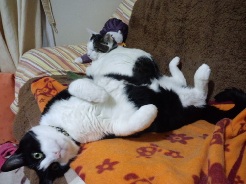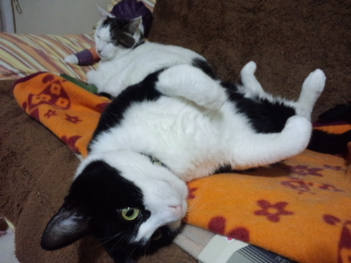 膝の上でひっくり返してお腹をもしゃもしゃしたら、ひっくり返ったままだら〜んとしてた。