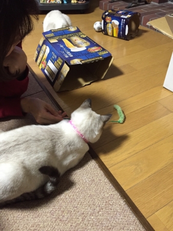 猫の気を惹くつもりで紐を取り付けてから、操縦してみたのですが…