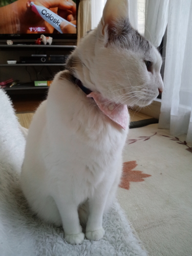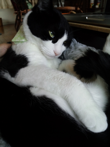 こんなにでかい図体して鳴き声が超可愛いので声聞いてから姿見るとみんな驚くよねー。今日も待合室で「あらまぁ子猫かと思ったら!!」って言われた(笑)