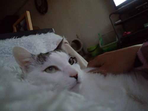 なぜ、カメラ目線のまま、ゆっくり横になる^^;