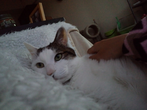 私が近寄ると(人見知りをするようで^^;)このように床に飛び降りてしまいましたが