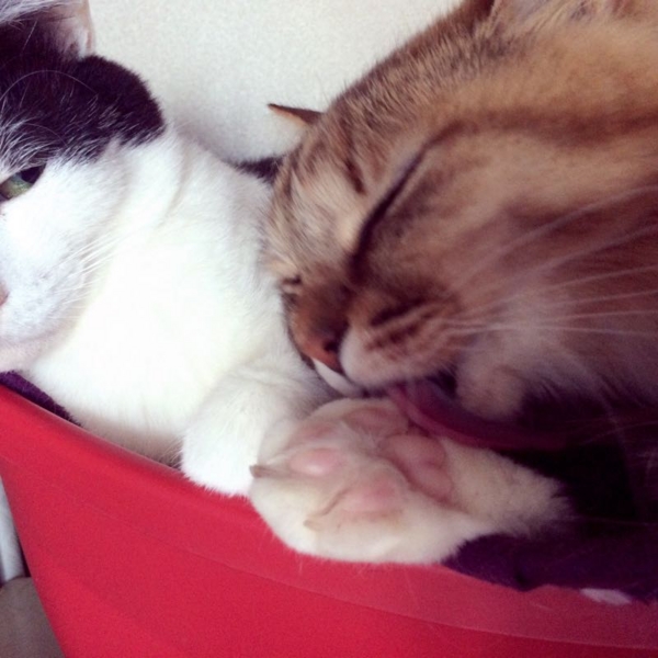 ちゃっかり引き出しが開いた隙間にもぐり込んでいる。