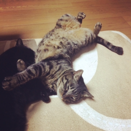 やっとおこたから出てきたと思ったら、今度は窓際で寝てる。