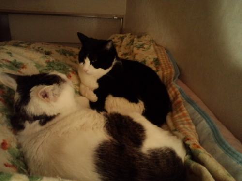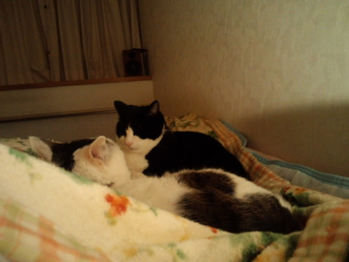 術後の経過は順調で日向ぼっこをする猫ズ。