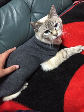 クビカラーを嫌がる猫もいるので傷を舐めらないように獣医さんのアドバイスで作りました。