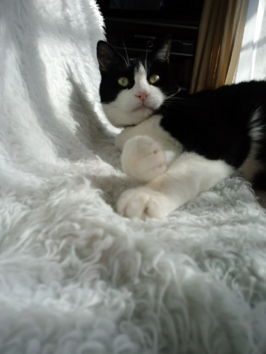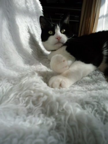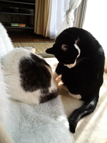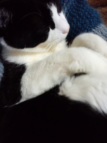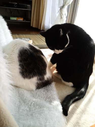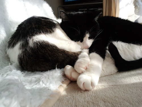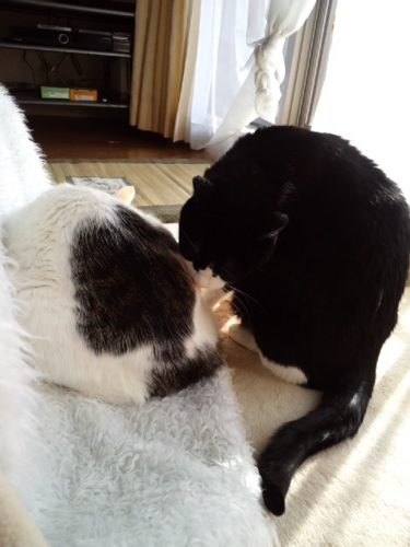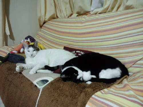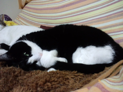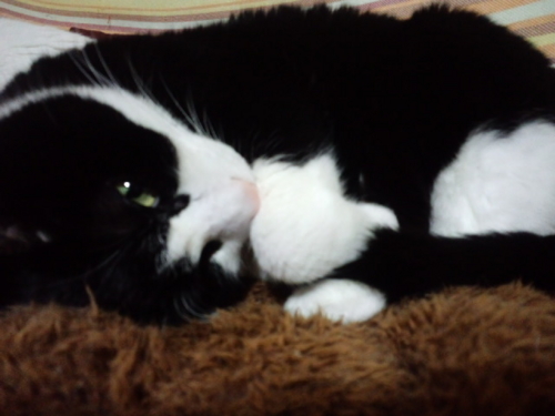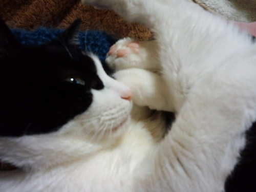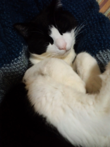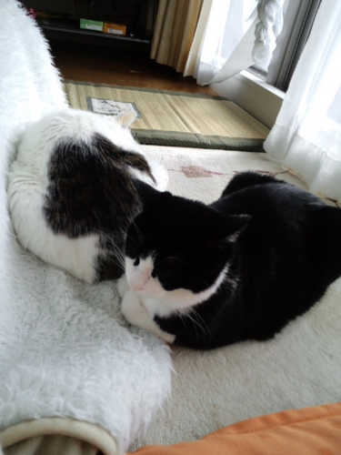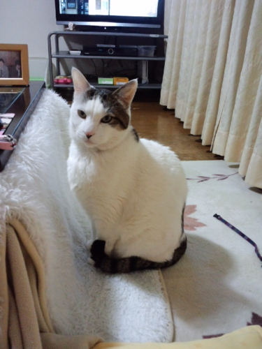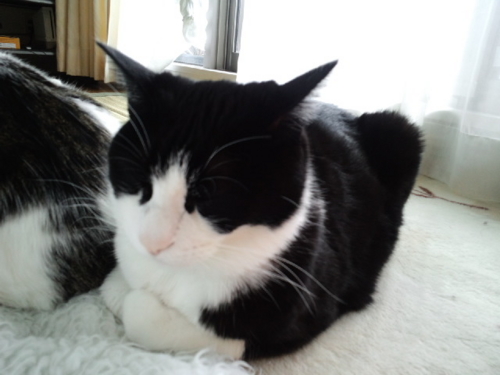 私が帰ってくるとうにゃうにゃふにゃふにゃうるさくて、落ち着いてテレビもネットも見ていられなかったけれど、膝に抱っこしてしばらく撫でてやったらおとなしくなった。