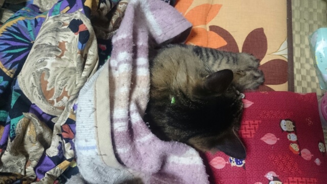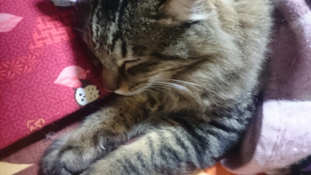 んー、膝の上で寝るくらいなら、おこたに入ってくれる方がありがたいんですけどねえ。