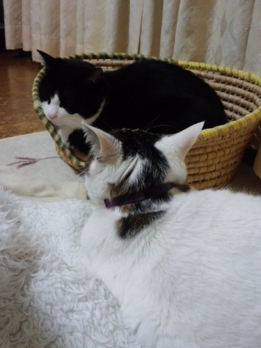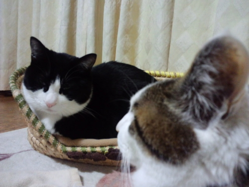 飼い主の都合により夕飯時間が遅れたことに猫さんたちご立腹。