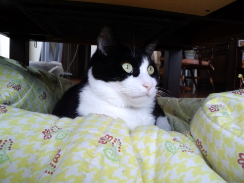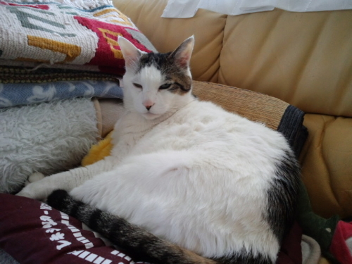 一応作業が終わって私がここに座ると猫が膝に乗ってきたので「ま、いいか。抱っこしておとなしくしてくれるなら」と思った途端、クサイにおいが漂ってきたので、ありゃ、ウンチしたん?と慌てて片付けに行ったら、ウンチなんか影も形もなし。
