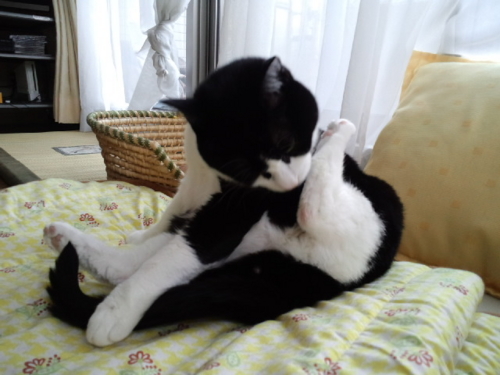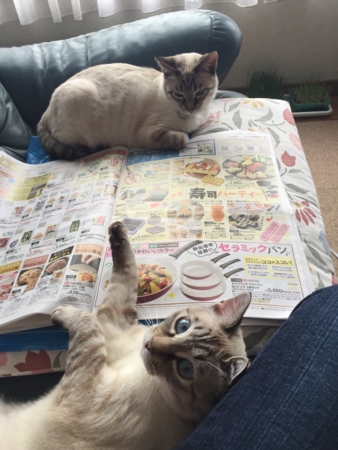 私がいつもの座椅子に座っているとふにゃふにゃうるさく言ってきて、膝に乗っても落ち着かず何か文句ばかり言うので、私は立って他の場所に行ったら、すぐに座椅子で落ち着いて座ってしまった。