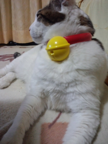 昼間そこで私のカーディガンを敷いて寝ていたのが気に入ったらしく、座椅子を自分の場所に決めたらしい。