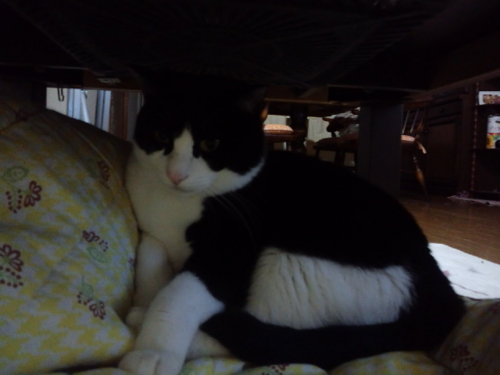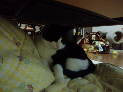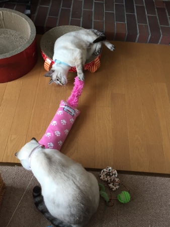 そのあと膝から下りて走って逃げて、これ見よがしに指を舐めている。