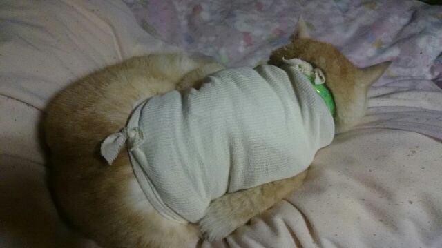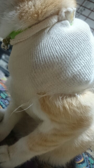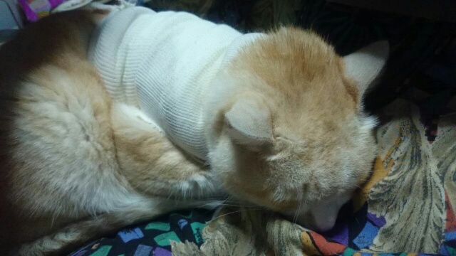 化膿してたから洗浄と抗生剤入れて包帯ぐるぐる+ベスト。