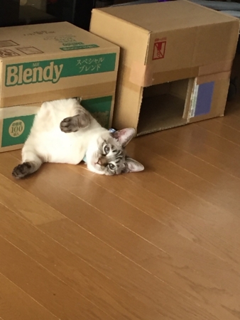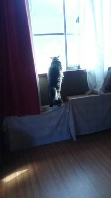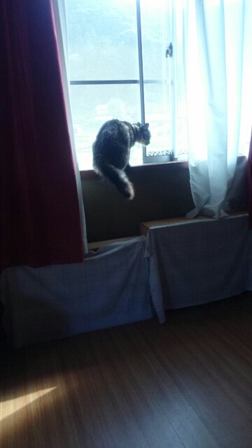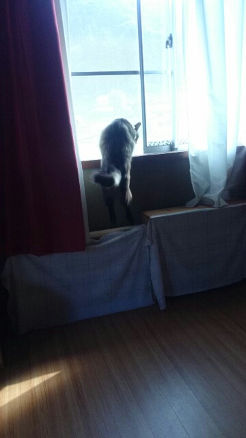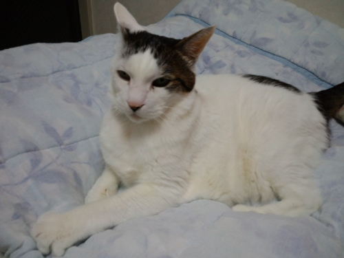 横の座布団でぐーぐー寝てたのに、私がアイスキャンデーを食べ始めたらすぐに起きてきた。膝に上りついてキャンデーをくんくんして「なんや。。。。。」という感じで行ってしまった。