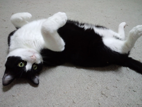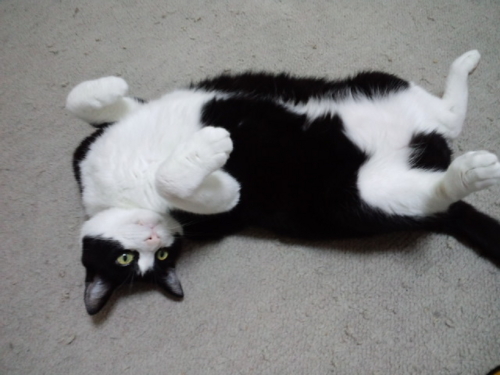 寝ようかと思う頃になって猫荒ぶり中。爪とぎを激しくバリバリやったかと思うと、研ぐだけでは飽きたらず、走ってきてズザーっと下の敷物ごと滑らせたりしている。