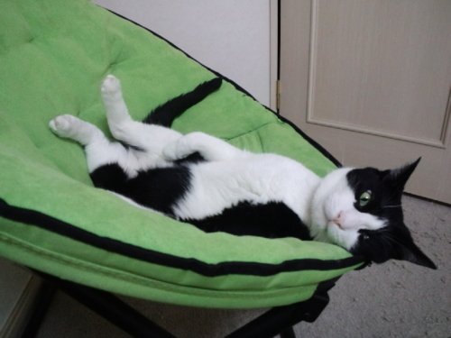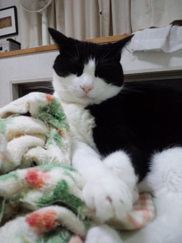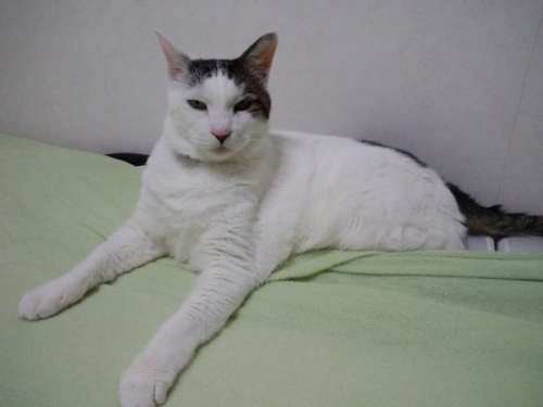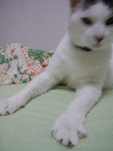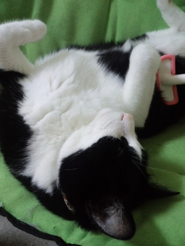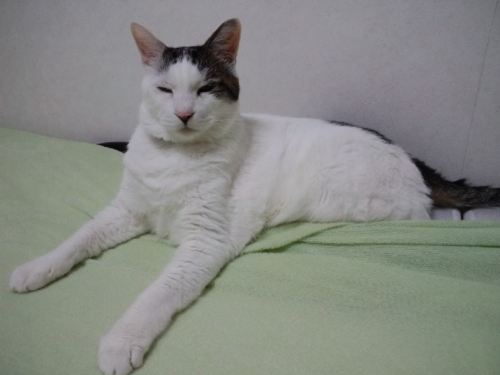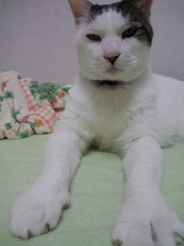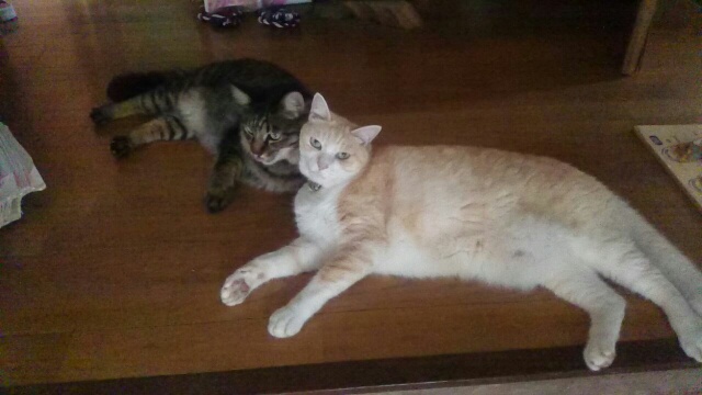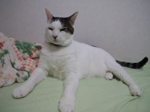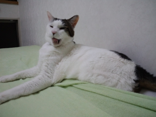 この暑いのに、しかも冷房部屋には来ないで暑いところで寝そべってばかりなのに、みい太は「ゴハン、ゴハン」とよく欲しがる。