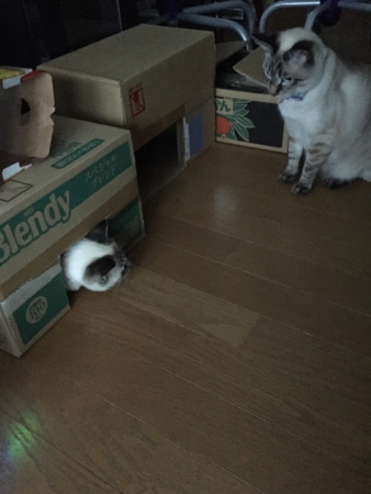 A子姉さんのお気に入りのダンボールハウスを乗っ取るの図。
