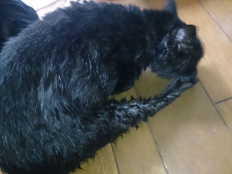 ふと目をやると、床にぼんぼんをこすりつけた跡が…