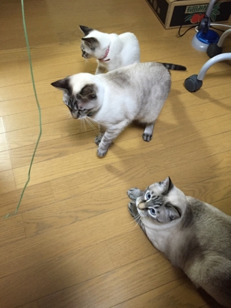 2日前仕事から帰ったまめ夫さんが紐を揺らして猫釣りをしていました。
