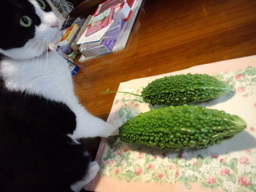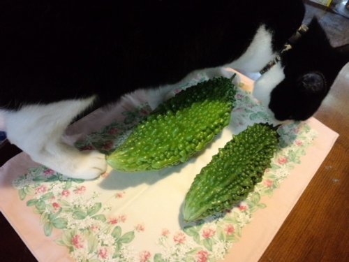 ゴーヤの大きさを伝えたいのに、ごまふくが比較対象では上手く伝わりません
