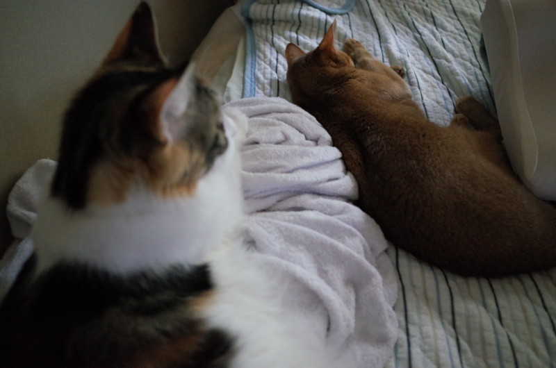 さっきちょっと弟が来てた時、妙に興奮したり警戒したりして、いつものように寄ってこないし、大好きなブラッシングでもやたらピリピリしてすぐにどこかに行ったり噛みついたり。