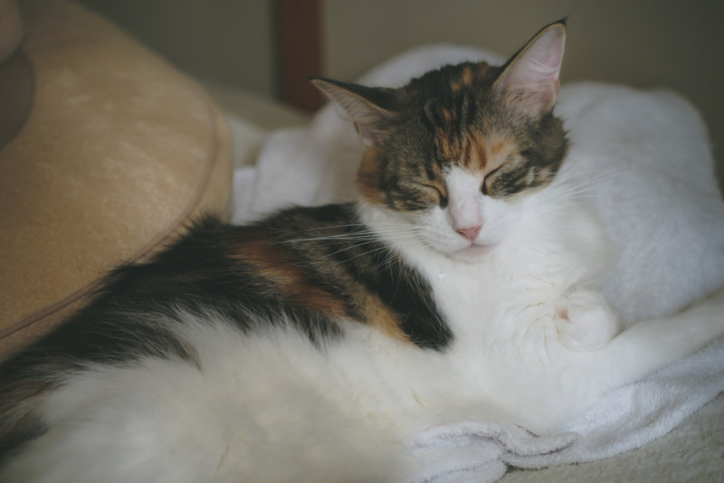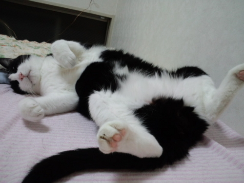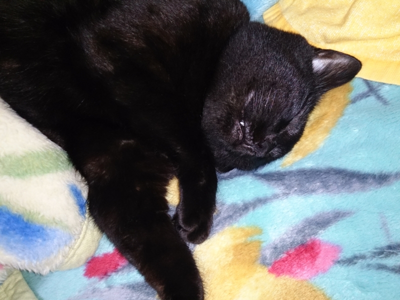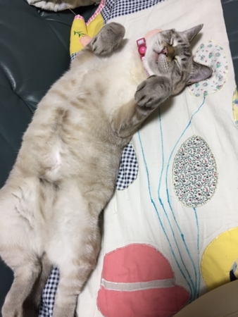 開けっ放しの洗面所のドアが風でバタンと閉まる音がした途端、ここで寝ていた猫がビクッと立ち上がって走って行った。