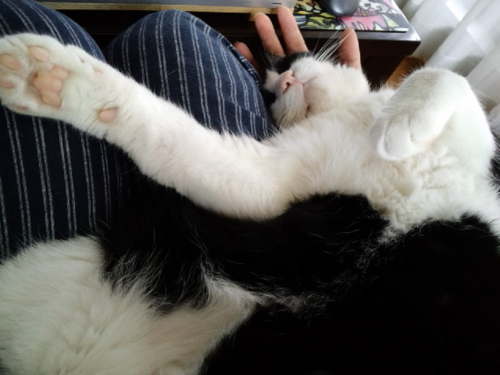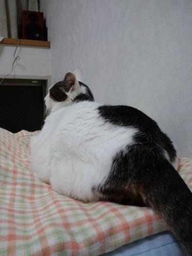 「ネコ歩き」の録画見ながらごはんを食べていたら、子猫の声で天袋で寝ていた猫が起きて「え?何?どこ?」みたいな感じで上からキョロキョロし始めた。降りてこられるとうるさいので、録画止めちゃった。