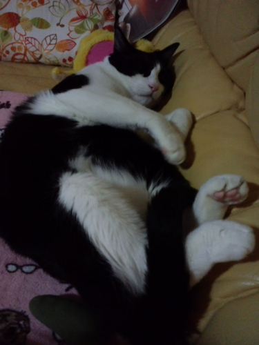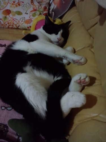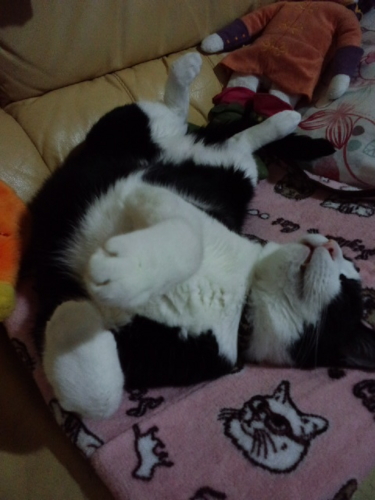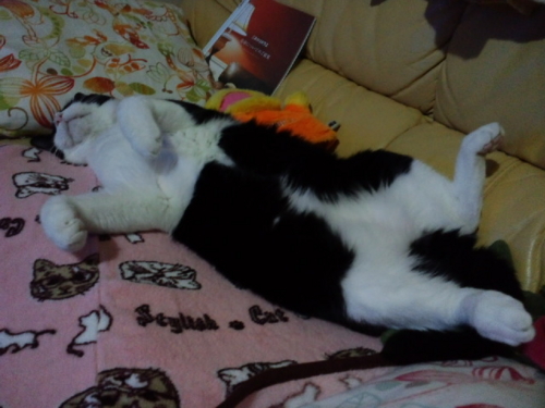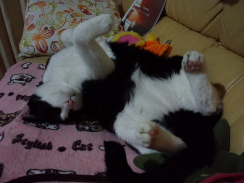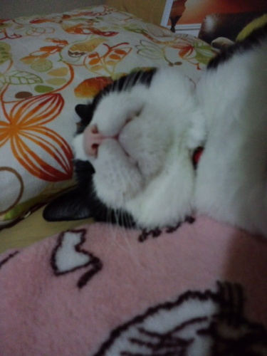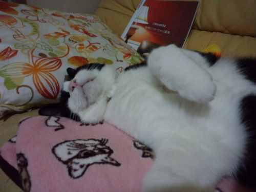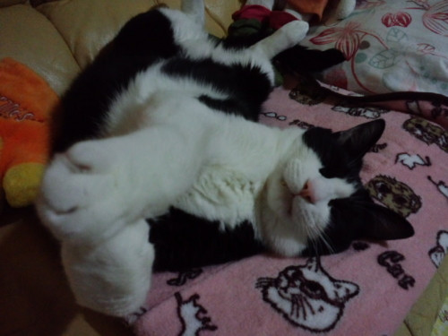 今日もまた猫がうるさいのでお布団を敷いてやったら、もう静かになってお布団の上。