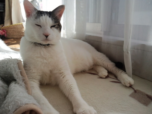 掃除やら何やらの作業の合間にちょっと座ってハイクなど見ていたら、すぐに猫がやってきて膝の上で香箱組んで、ごろごろ言いながら私の胸で「ごめん寝」状態になっている。