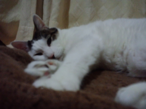 いっつも猫がかわいい顔して寝てるから写真撮ろうとすると、可愛くなくなるの。なんでかな。