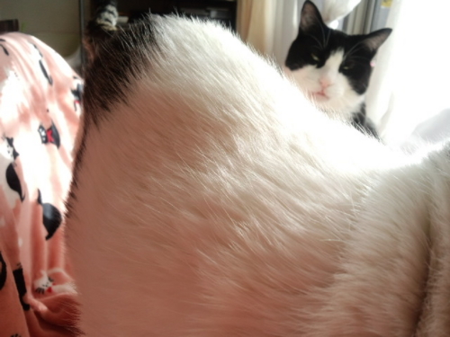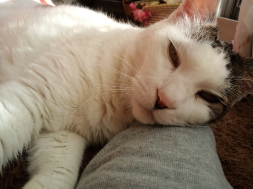 人が足が痛くて弱っているのに、遠慮会釈もなく膝の上に乗ってくる。