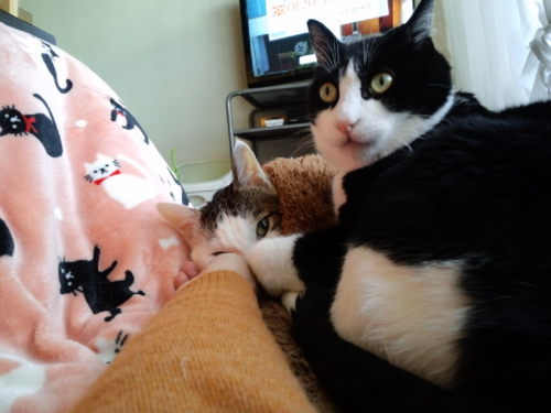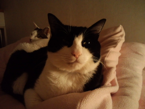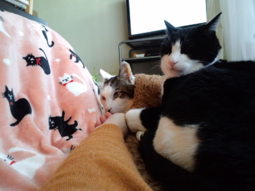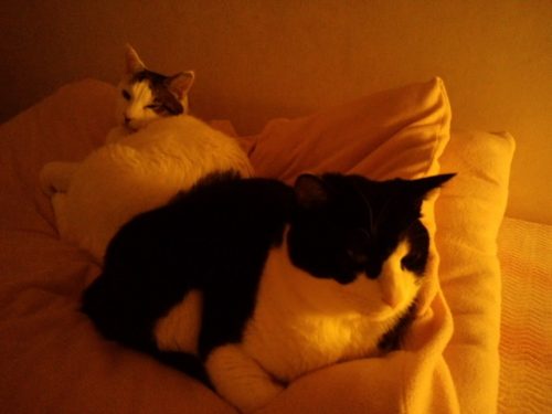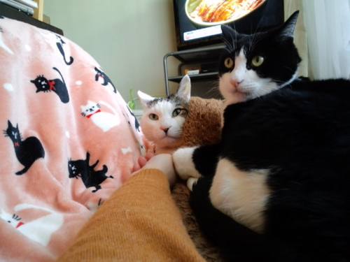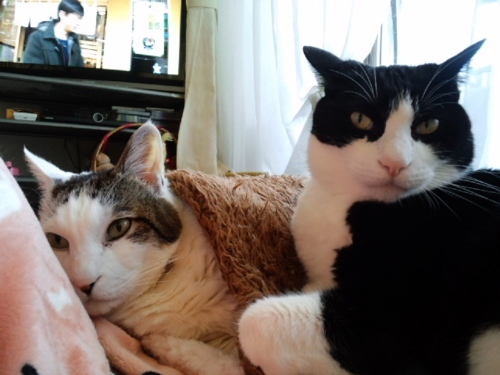 昨夜、寝室に現れたニンゲンに、あからさまに迷惑そうな二人