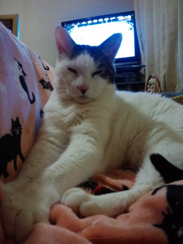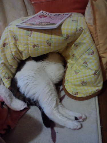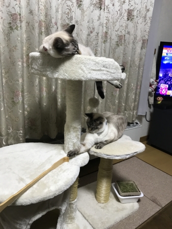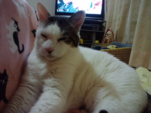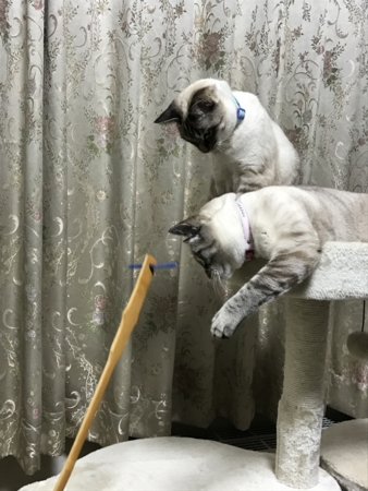 横で「ひゃひゃ〜ん」とか「きゃきゃ〜ん」とかいうような変な声が聞こえたので振り向くと、猫が声を出しながらあくびしていた。