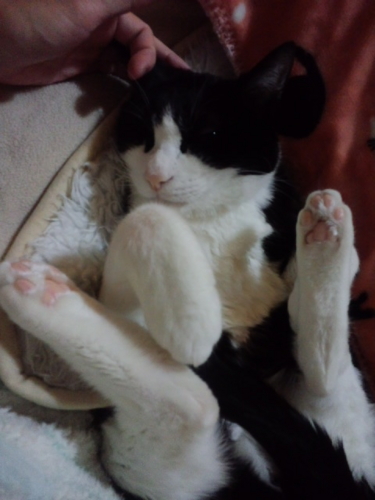 本猫はのんきに日向ぼっこ中。たぶん、体調不良とかではないと思う。