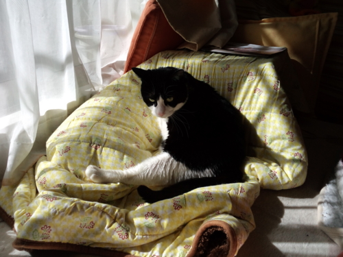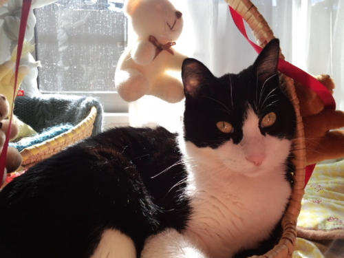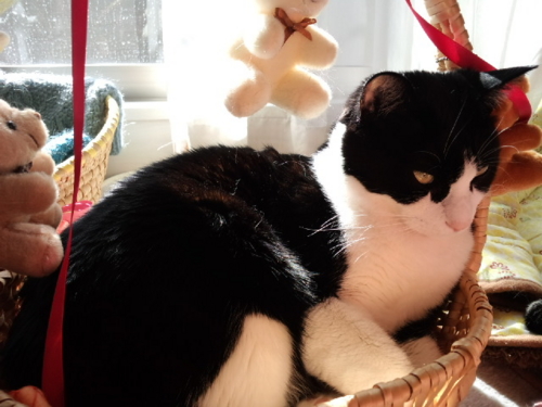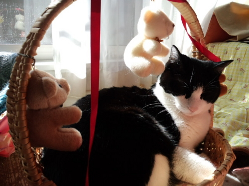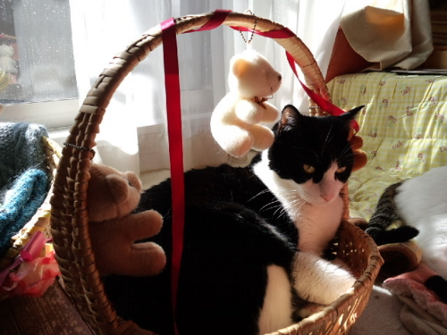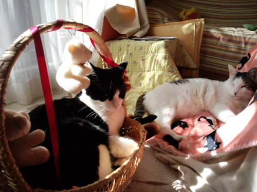 ごまふくがしんみりしていたので、籠ごと日なたに移動しました