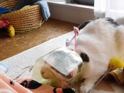 飲み薬ほどではないけど、塗り薬も嫌い。私が薬を袋から取り出すと気づくので、出してすぐじゃなく、しばらく経って忘れた頃に捕まえようと思ったけれど、完全に気づいてどこかへ行っちゃった。