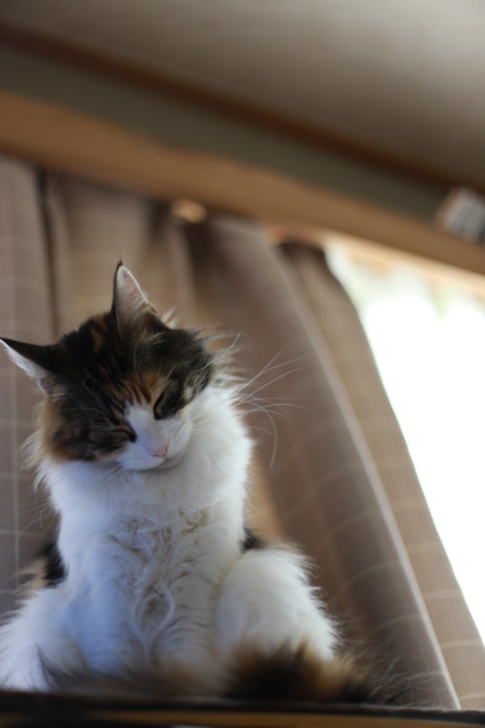 しばらくして戻ってきてから、素知らぬ風を装って近づいて捕まえて、ようやく薬を塗ったが、そのあとは気を逸らすために抱っこしてナデナデとか、せっせとブラッシングとか。まったく手間がかかるわ。