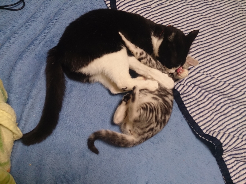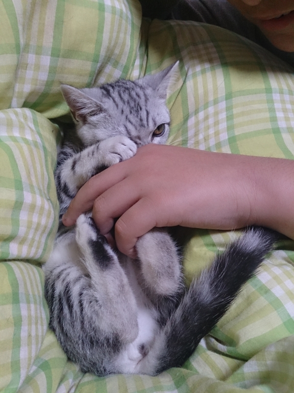 毎朝私が座っていると膝に乗ってきて丸まって、私の胸に顔をくっつけてくぅくぅ言いながら寝てしまう。重いし動けないし困るけれど、みい太にとってはこれが一日のうちの幸せな時間なのかもしれないので、邪険にはできない。(でも困る)