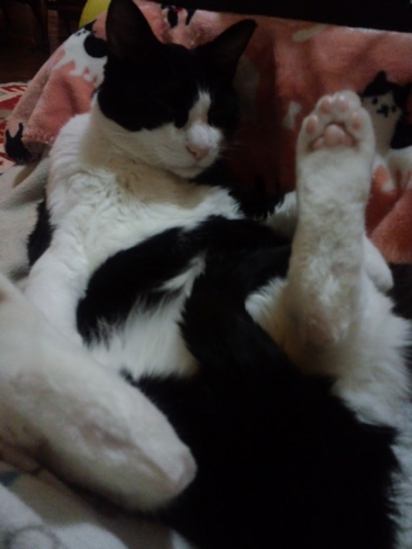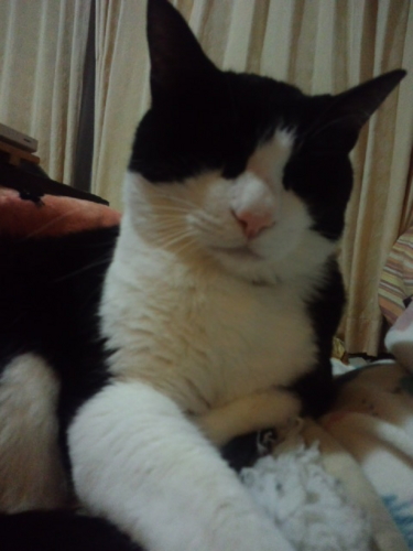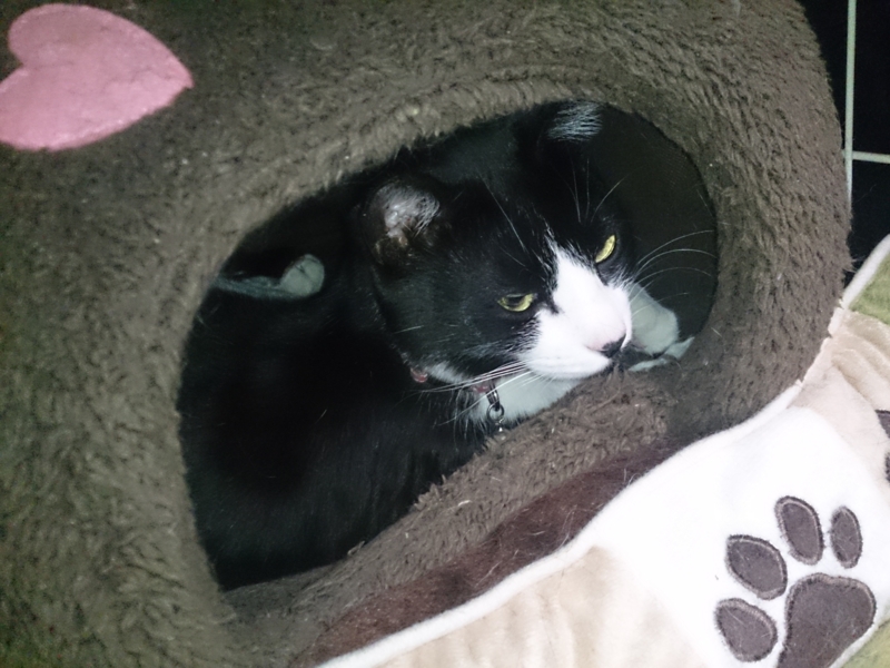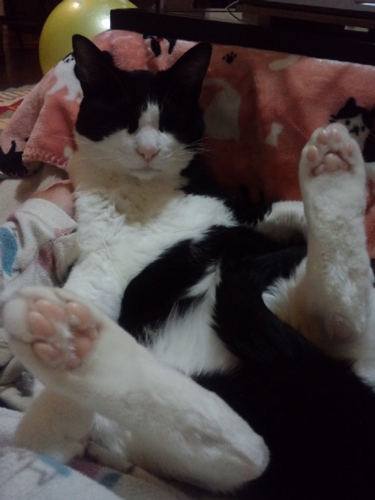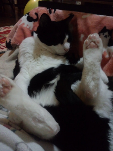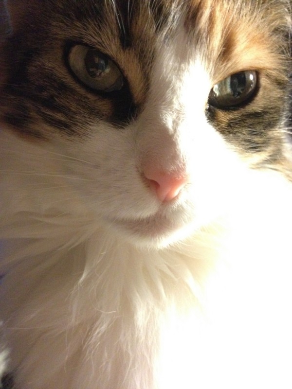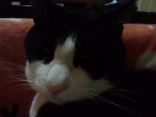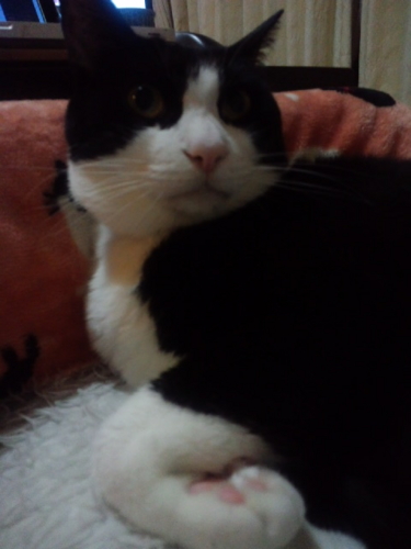 さっきまで私のお腹と胸に顔を押し付けてゴロゴロぎゅうぎゅう甘えていたのに、カメラを向けると急に真面目な顔に。