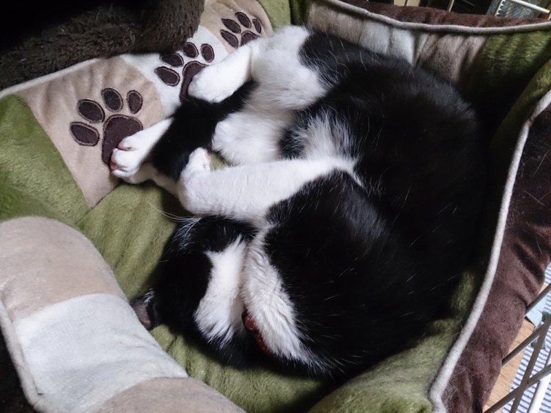 スツールの上に置いている猫ベッドが、昨日は二度ばかり床に落ちてひっくり返っていたので、置き方が悪かったのかなと思いながらその都度置き直してやっていたのだが、さっき見ていたら猫が自分で引っ張り下ろしていた。