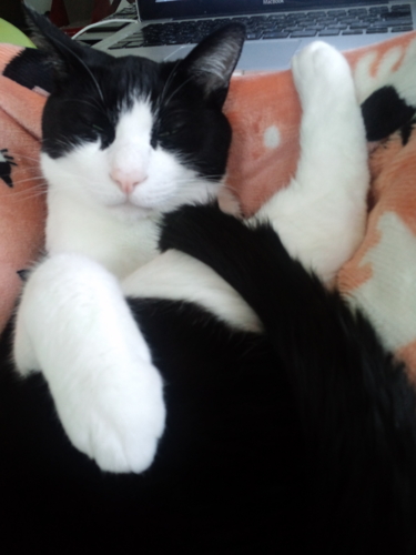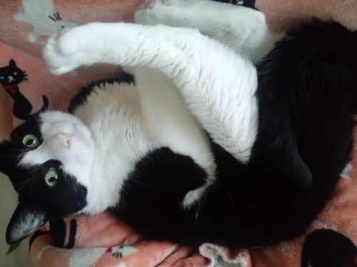 最近気が付くと、膝の上やお腹の上でくつろいでいるまめ