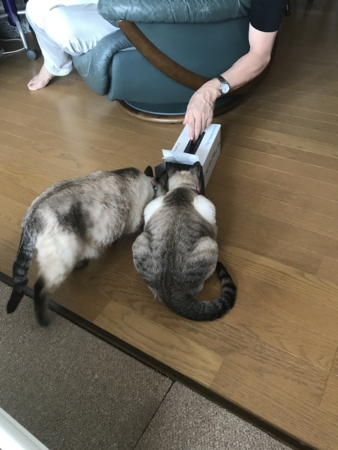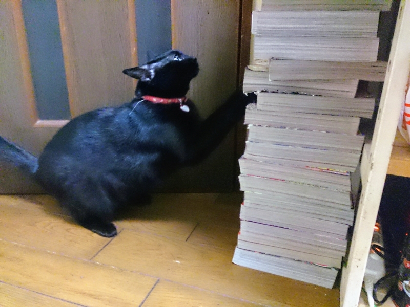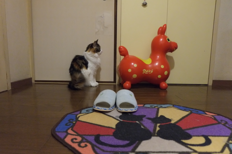 猫の姿が見えないので、また寝室で?と思って見に行ったら、いつも引っ張り下ろしているお布団も半纏もちゃんと台に積まれたまま。