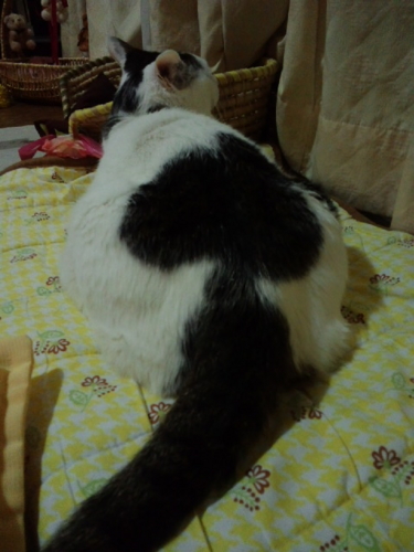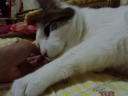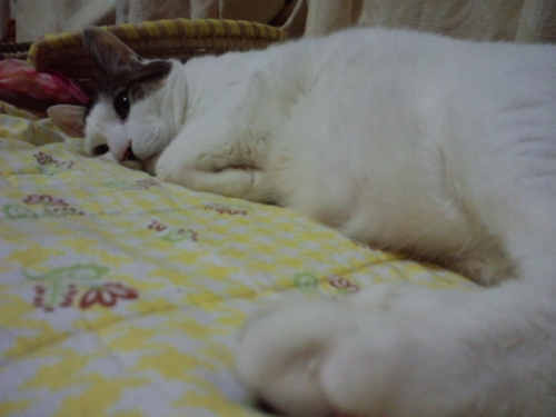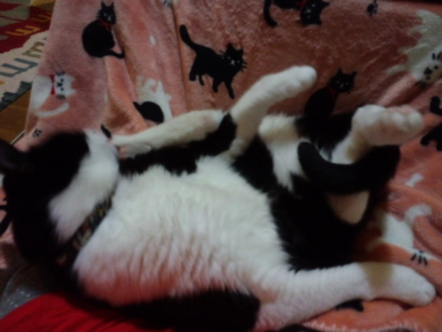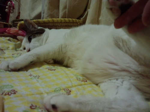 牢名主状態が心地よくて、今日はまだもっと寝ているつもりらしい。